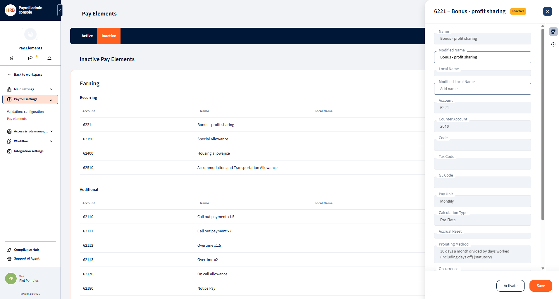 - Active pay elements can be deactivated from the Pay Element Details pop-up.