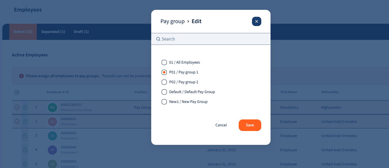 When users create new employees, user will be prompted to assign a Pay Group to the employee before employee activation: