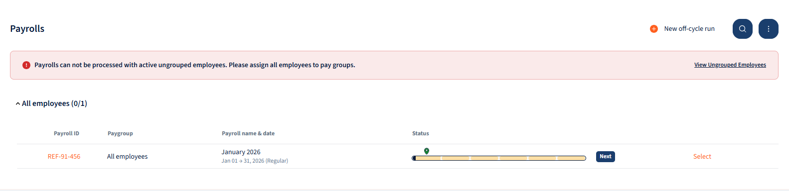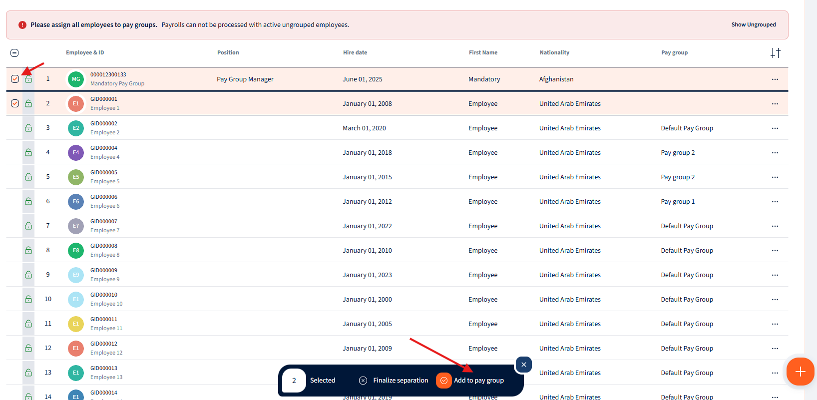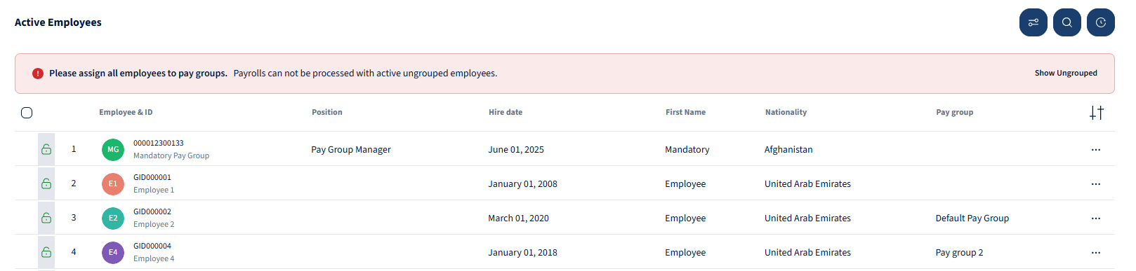 The HRB and PAC modules have been enhanced to enforce mandatory Pay Group assignment across all employee records. This update strengthens payroll governance, improves data integrity, and ensures consistent processing across workflows. The changes introduce system validations, user notifications, and expanded functionality to streamline Pay Group management at both individual and bulk levels, while preventing incomplete or non-compliant employee records from progressing through payroll processes. Users are also able to add Pay Group column from column management in employee listing